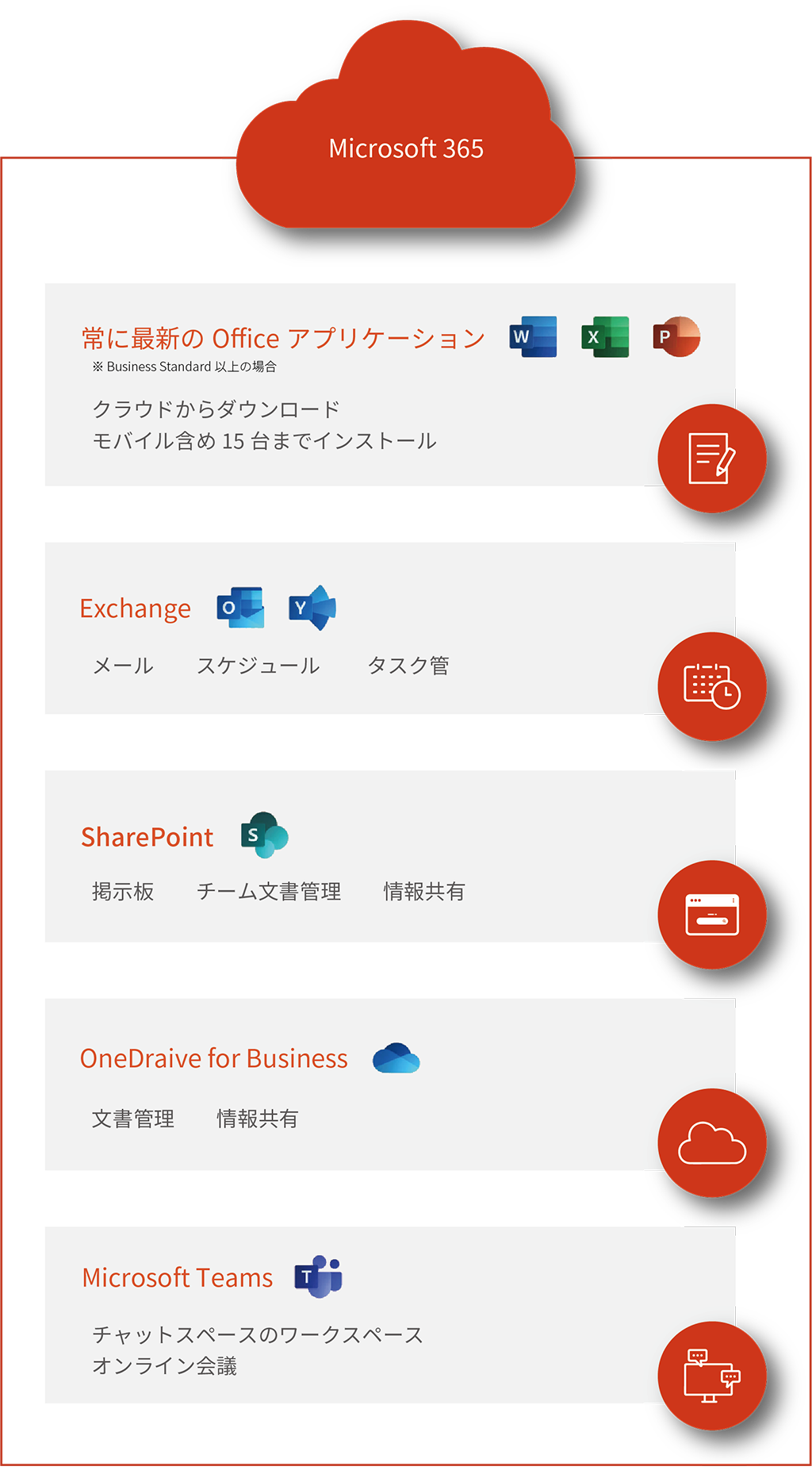 場所や時間に縛られず、最新版のWord、Excel、PowerPoint、Outlook、OneDrive、Teamsなどの