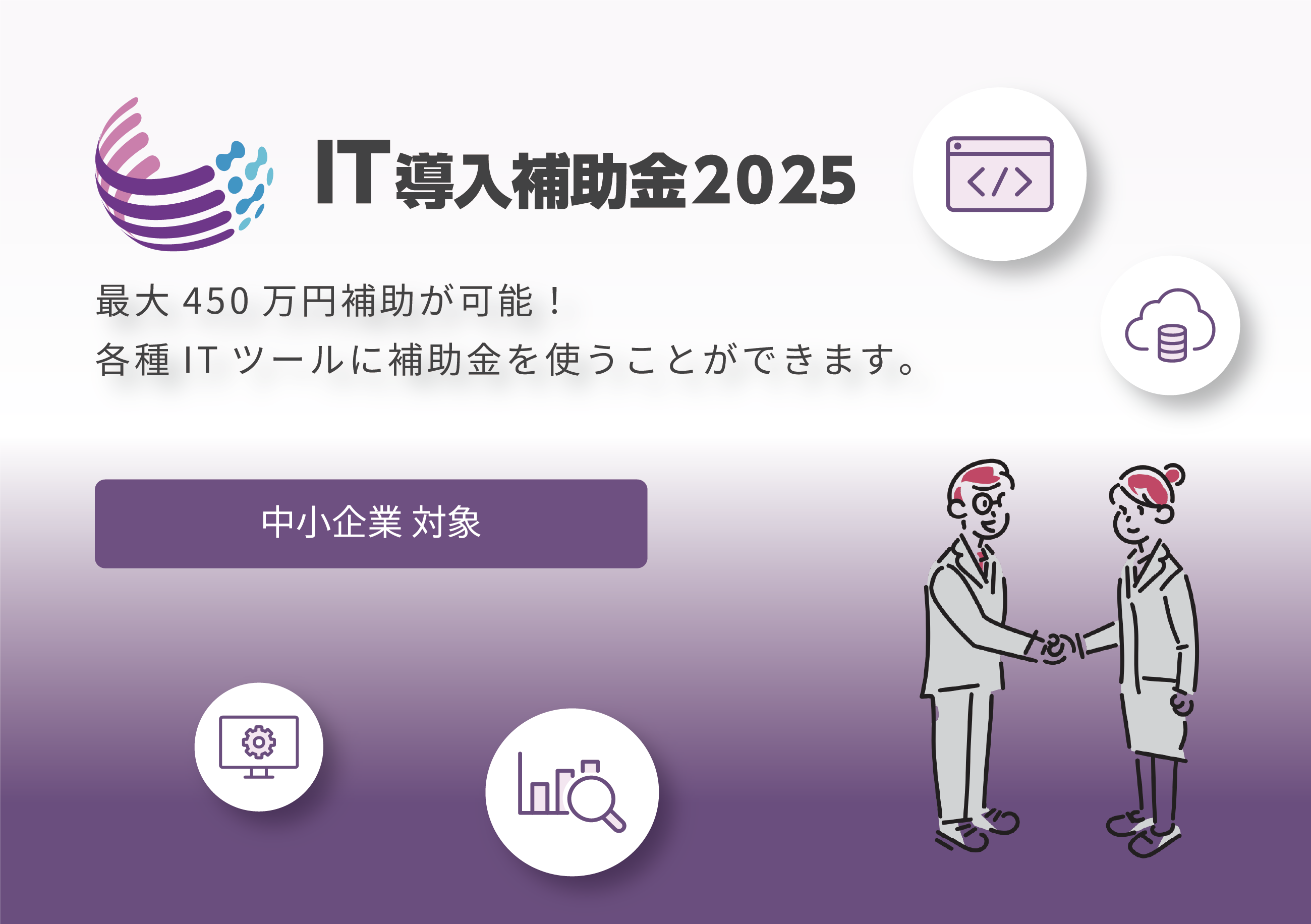 業務効率化やDX等に向けたITツール(ソフトウェア、サービス等)の導入を支援する補助金です。