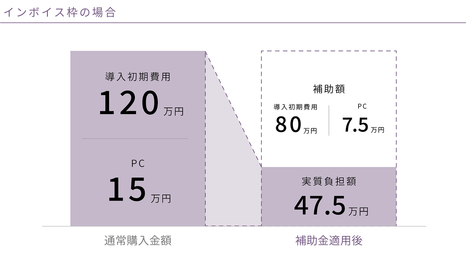 | 補助対象 | インボイス制度に対応した会計・受発注・決算ソフト | |