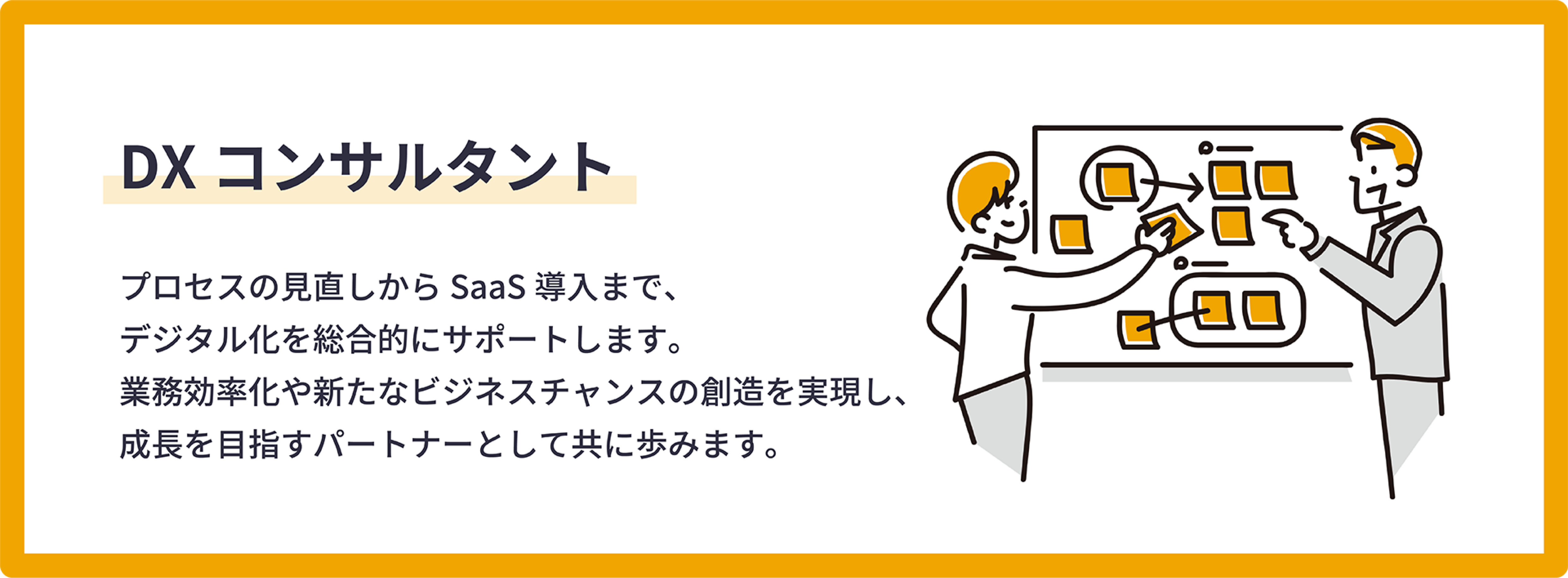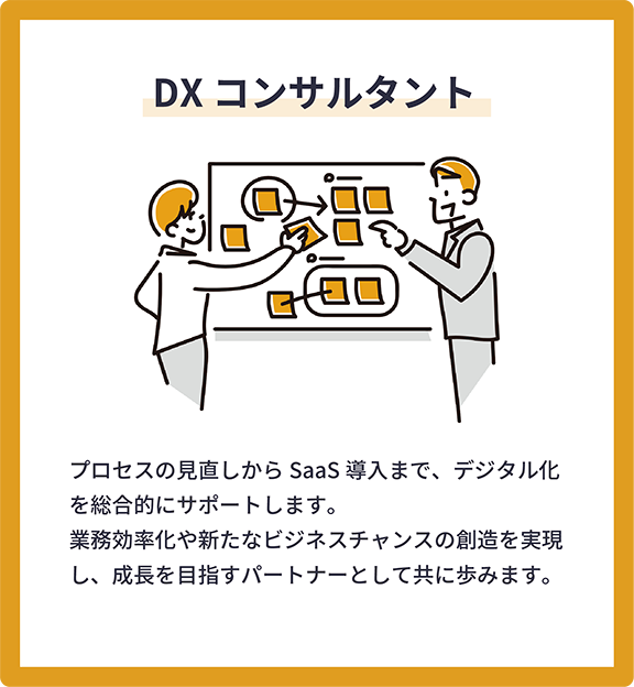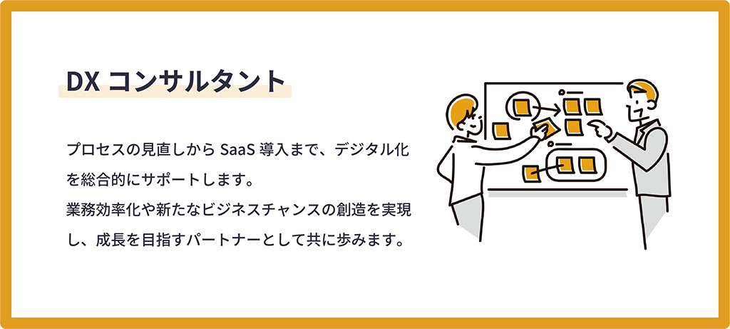 DXの導入に向けた初期段階から、実行支援まで一貫してサポートいたします。